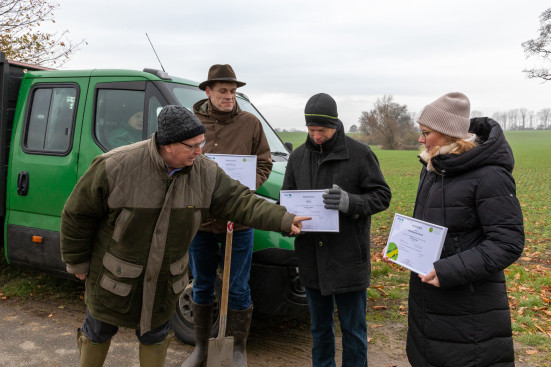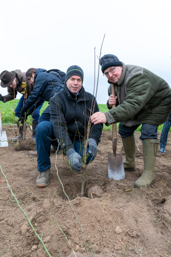 Bei der ersten Pflanzaktion am Rande der Gemeinde Grambow bedankte sich der Minister für Klimaschutz, Landwirtschaft, ländliche Räume und Umwelt, Dr. Till Backhaus, bei den Erstinvestoren: der WEMGA, der HygCen Germany GmbH und EDEKA Nord, für das Engagement.