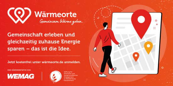 Der kommunale Energieversorger und die Stiftung für Ehrenamt und bürgerschaftliches Engagement in Mecklenburg-Vorpommern stellen gemeinsam eine Online-Plattform für Initiativen bereit, die Solidarität, Gemeinschaft und Zuwendung fördern. Ab sofort können auf der Plattform www.wärmeorte.de Orte, Aktionen und Events eingetragen werden, die Wärme bereitstellen, im wörtlichen und im übertragenen Sinn. Gemeinschaft erleben und gleichzeitig zu Hause Energie sparen – das ist die Idee.