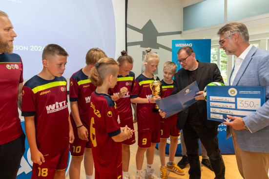 Die WEMAG und der Landesfußballverband Mecklenburg-Vorpommern (LFV) haben am 26. Juni zum Abschluss der Spielsaison 2024/2025 die traditionelle Meisterehrung der WEMAG-Ligen der A- bis D-Junioren am Hauptstandort des Energieversorgers in Schwerin ausgerichtet. Insgesamt sieben Vereine nahmen an den Ehrungen teil. Ausgezeichnet wurden die Staffelsieger, vier Gewinner des Fairplay-Cups sowie die fünf treffsichersten Spieler der WEMAG-Ligen.