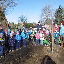 Im Sommer 2021 wurde gemeinsam mit den Kindergartenkindern ein Naschgarten mit Beerenobststräuchern angelegt. Zudem konnte ein Pavillon als Treffpunkt im Freien verwirklicht werden. Dies wurde im Oktober mit einem großen Einweihungsfest gefeiert. Außerdem haben wir Rosen und insektenfreundliche Sträucher pflanzen können.